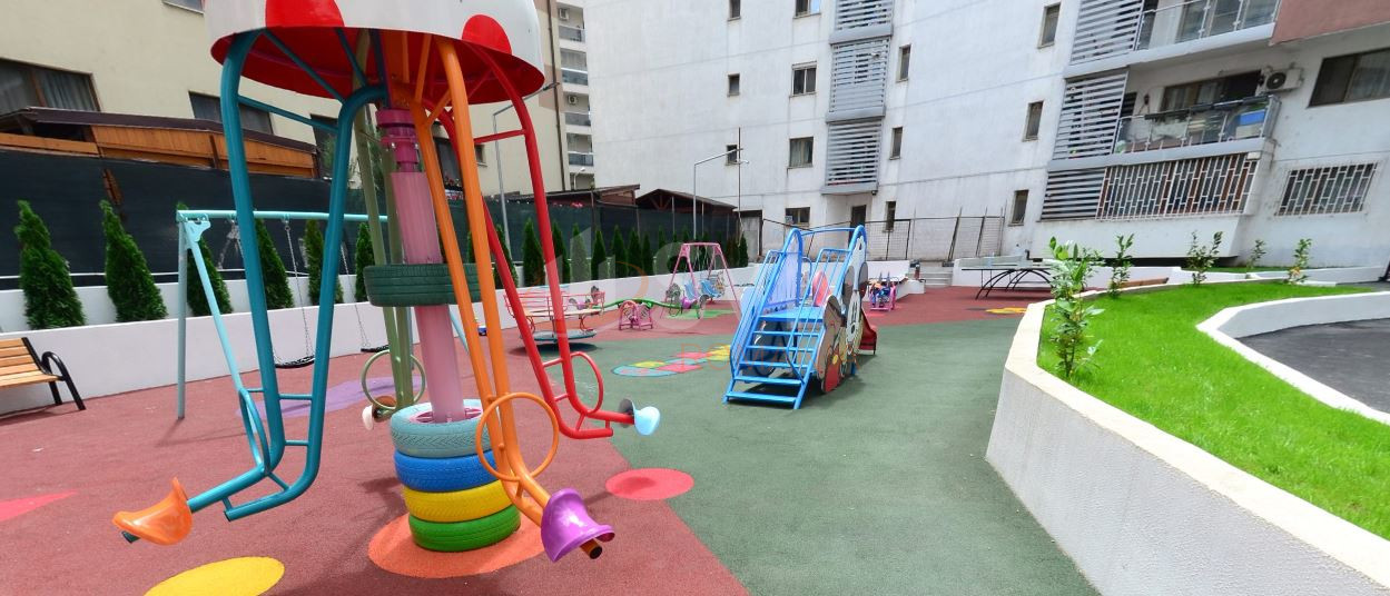 The complex also provides a playground in the inner courtyard.