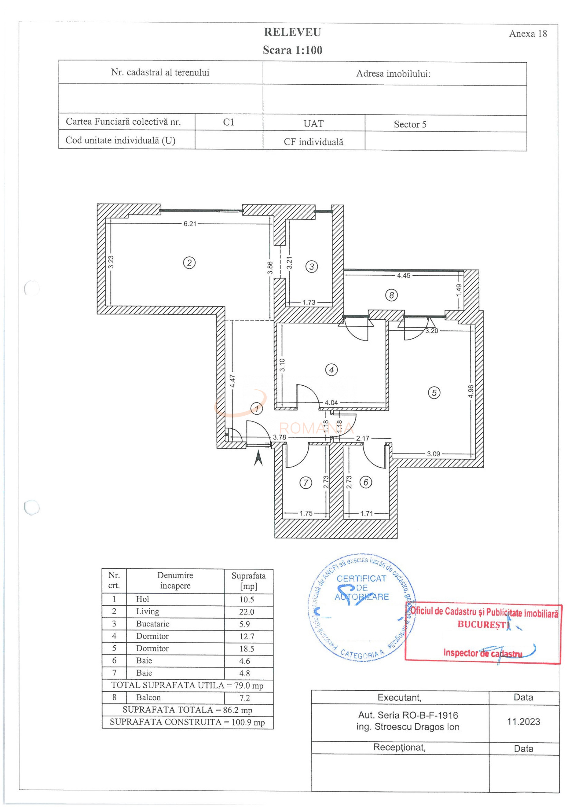 Apartamentul are o suprafata utila totala de 86 metri patrati si este situat la etajul 11 al unui imobil cu 12 niveluri. Imobilul este finalizat si disponibil imediat pentru mutare.