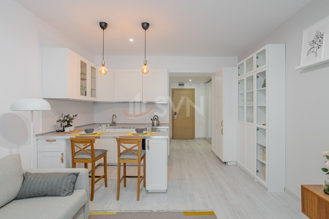 SVN Residentialist Pipera presents an unfurnished studio located in the Campeador Sweet Green residential complex, a modern project that redefines comfort and functionality standards in the residential market. The complex is located on Soseaua Viilor, in a quiet area, with easy access to shopping centers, schools, kindergartens, and public transport, offering an ideal balance between tranquility and accessibility.
