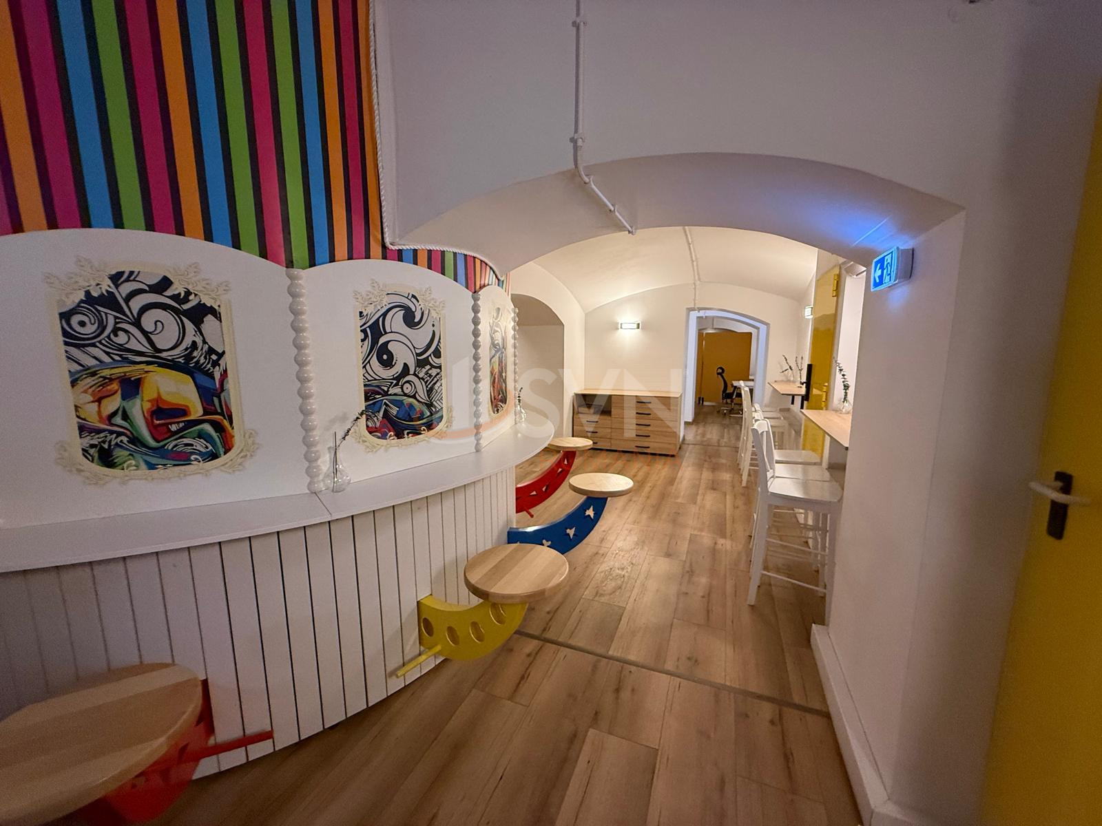 Subsolul este gandit ca o zona dedicata pentru servit masa, relaxare si activitati de recreere pentru angajati, oferind un spatiu perfect pentru pauze si socializare.
