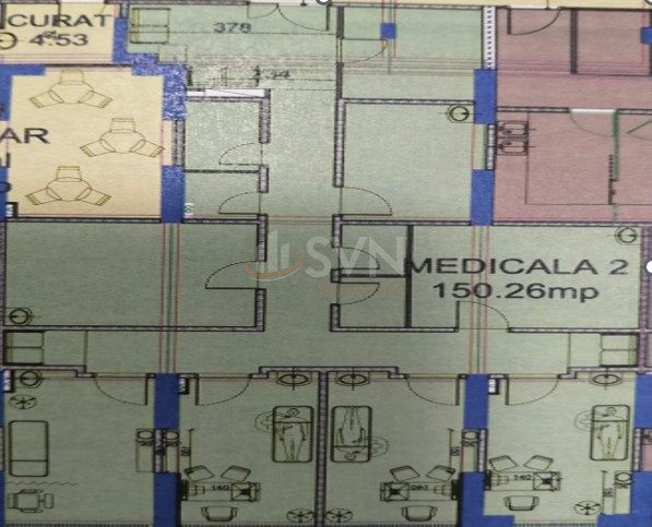 The interior layout allows for the efficient organization of medical activities or professional services that require both individual consultation rooms and larger treatment areas.