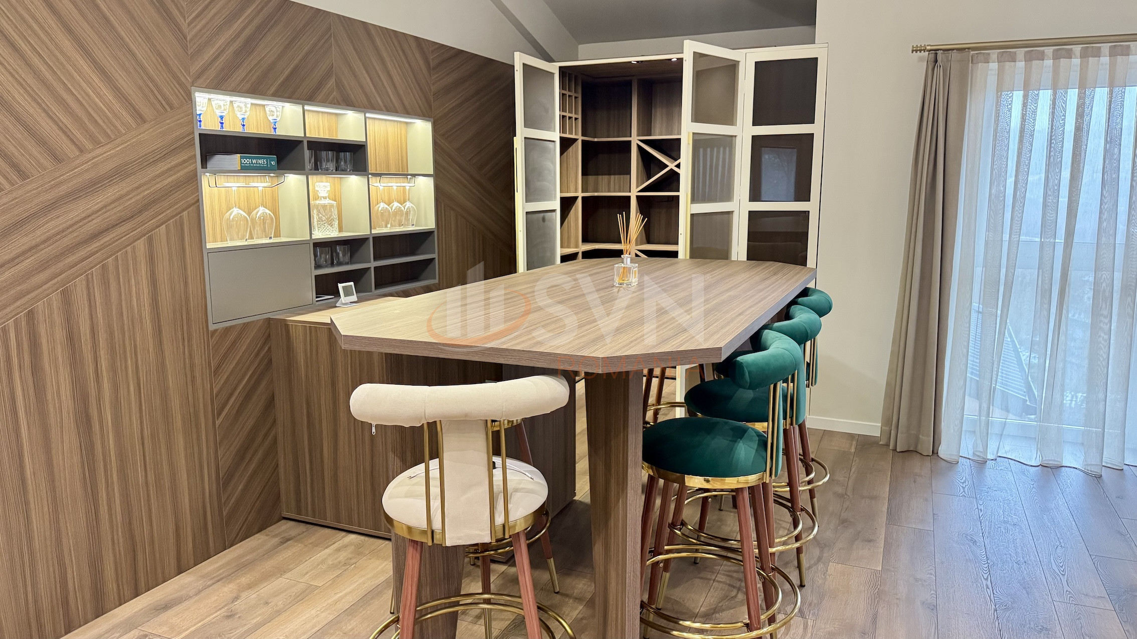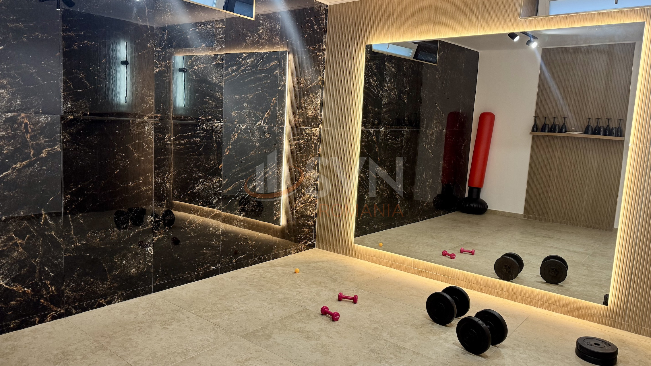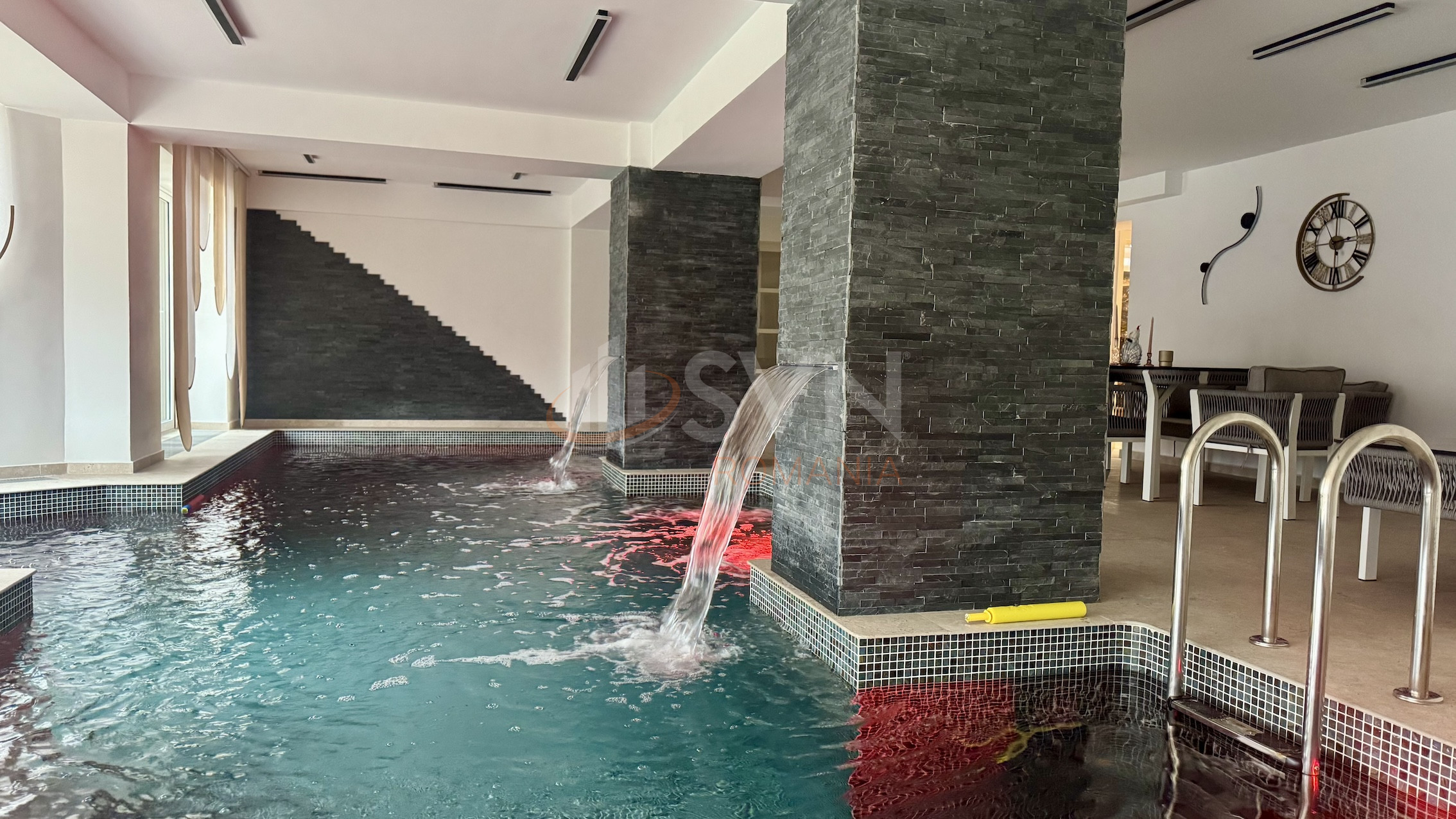 Zona de relaxare este spectaculosa: piscina interioara incalzita, jacuzzi, fantani, lumini ambientale, spatiu fitness si deschidere totala catre curte prin zone vitrate glisante. La interior, fiecare detaliu a fost gandit pentru confort: dormitoare cu baie proprie, bucatarie complet utilata si un etaj dedicat entertainment-ului cu bar, poker room si cinema corner.