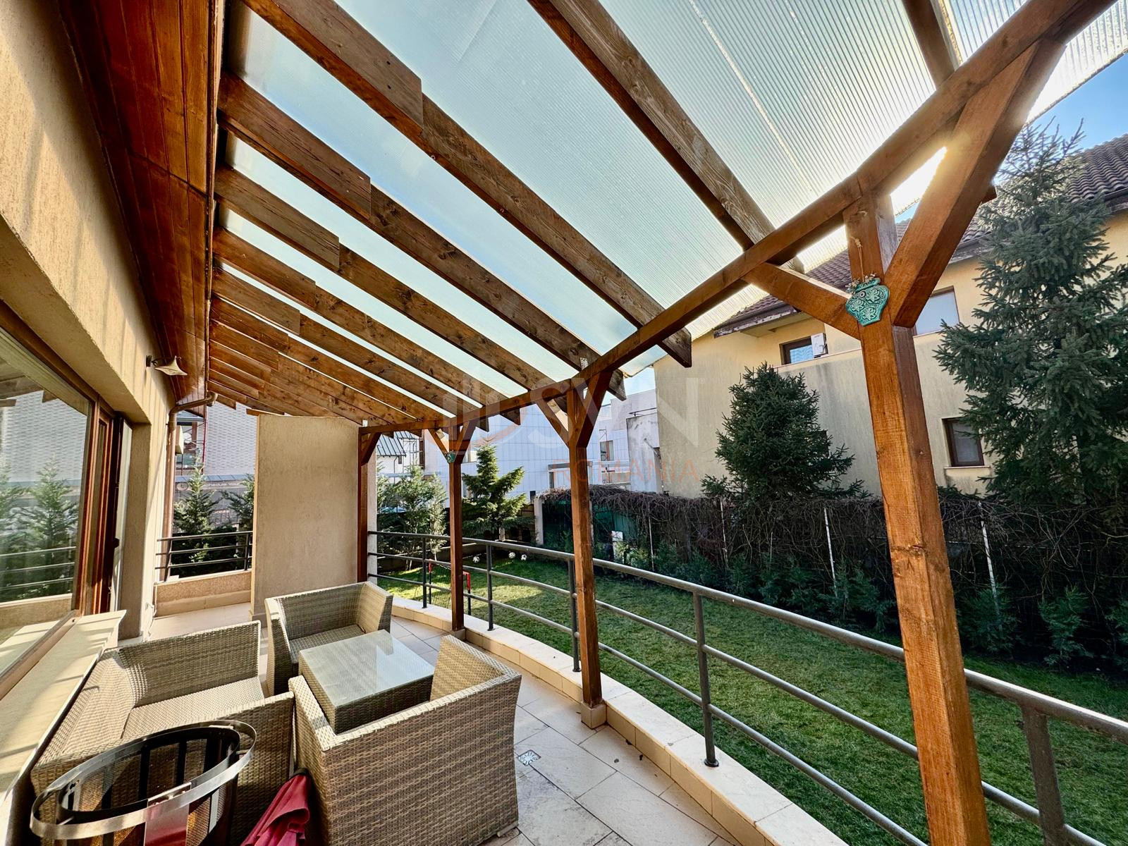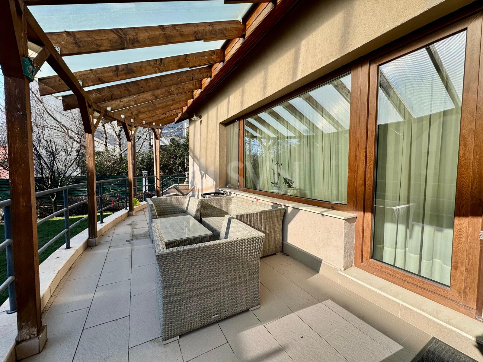 Exteriorul proprietatii include o gradina amenajata peisagistic, dotata cu sistem de irigatii si iluminat ambiental, precum si terase multiple, ideale pentru relaxare si dining in aer liber. Amplasarea langa padure asigura un nivel ridicat de intimitate si liniste, oferind totodata acces direct catre traseele de plimbare si alergare.