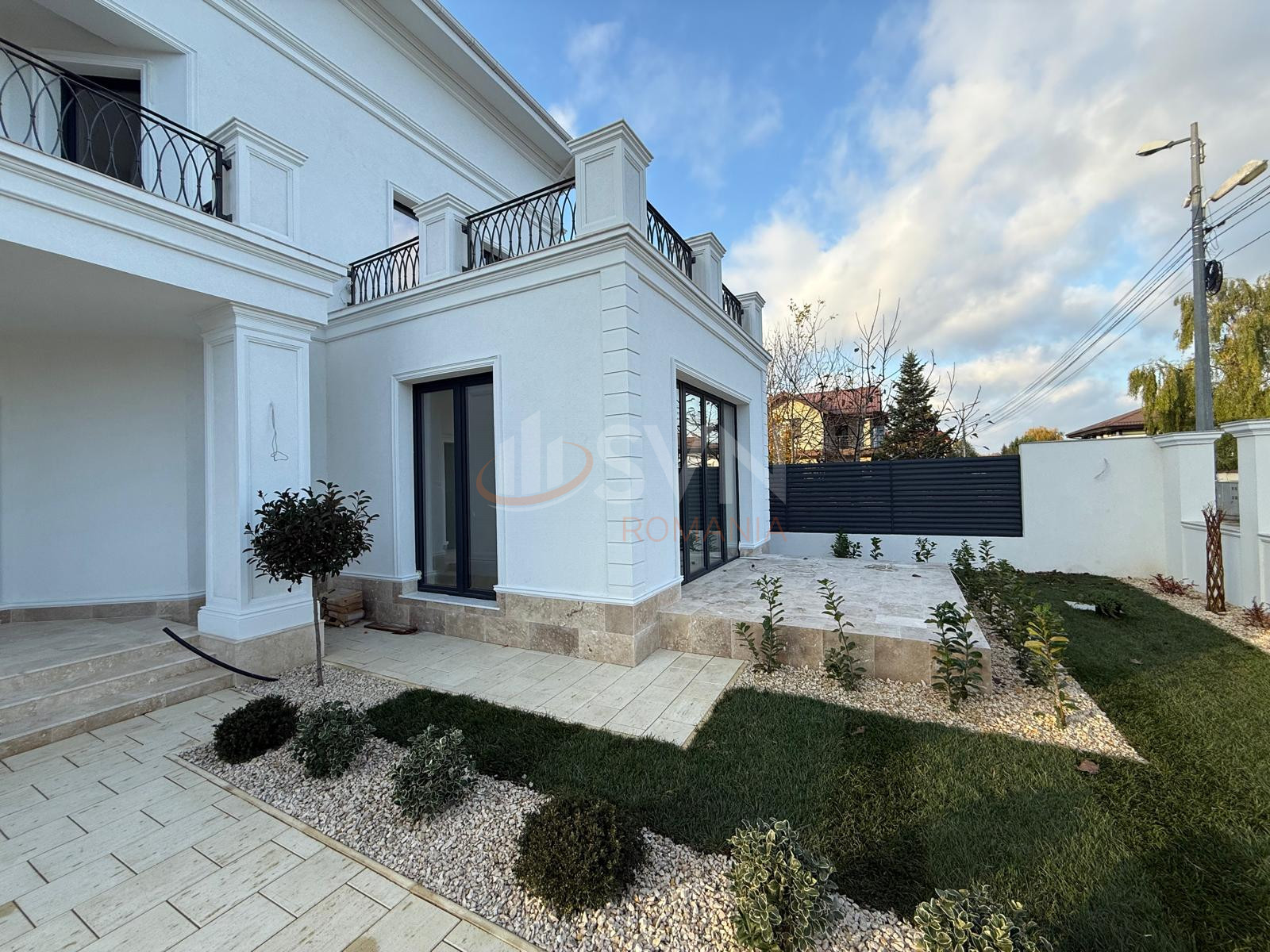 Curte complet amenajata, cu spatiu verde, alei si zona de relaxare