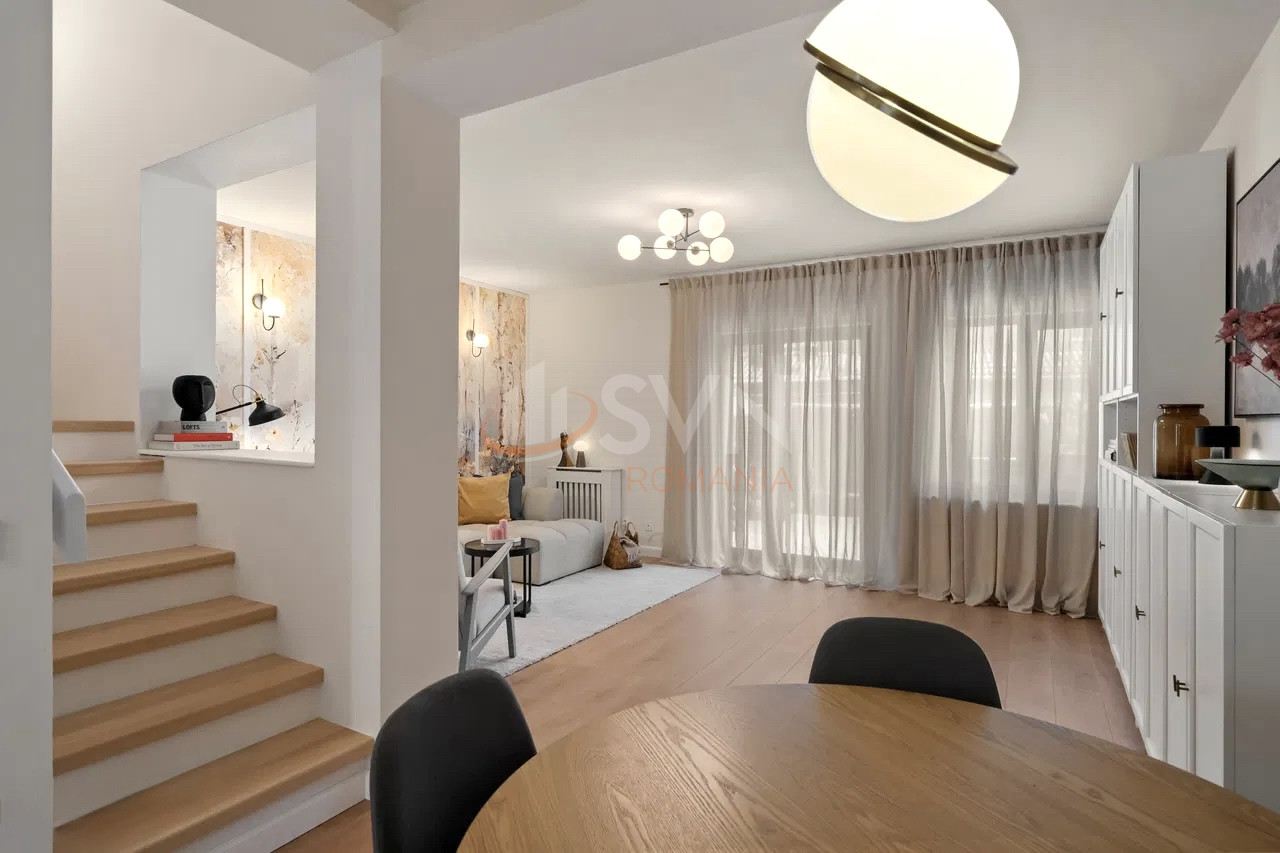 Proprietatea a fost complet renovata, cu atentie la detalii si este oferita spre vanzare complet mobilata si utilata, gata pentru mutare. Compartimentarea este eficienta si functionala, incluzand patru dormitoare, un living generos cu zona de dining, bucatarie, trei bai, precum si spatii de depozitare bine organizate.