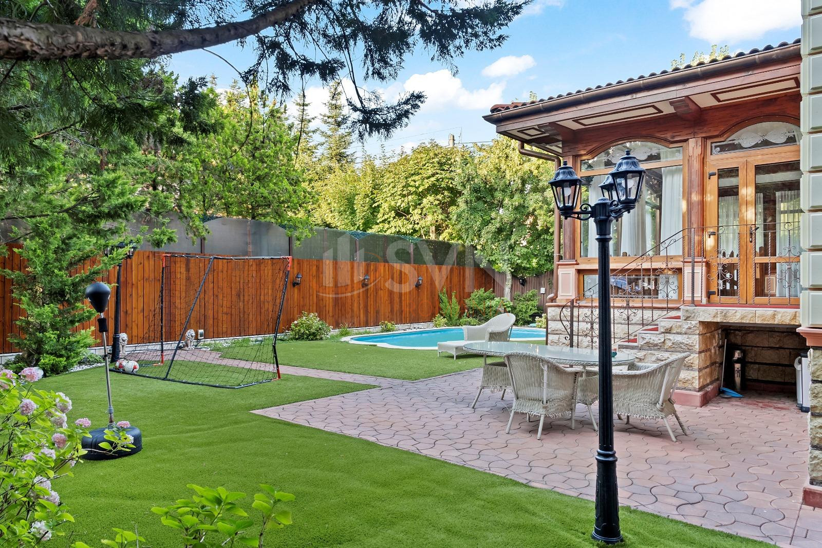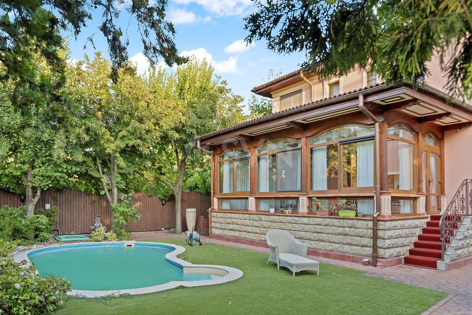 - Piscina privata inconjurata de o gradina atent amenajata, ce ofera un cadru ideal pentru relaxare si petrecerea timpului in aer liber