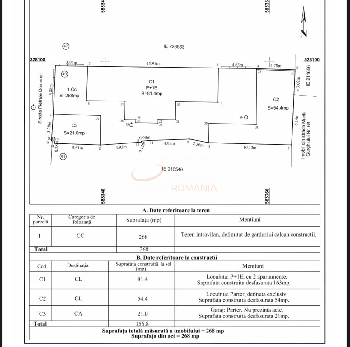 Imobilul a fost complet renovat la interior si este gata pentru mutare. Suprafata totala construita este de 163 mp, iar terenul total aferent proprietatii este de 268 mp pe care este situat si garajul.