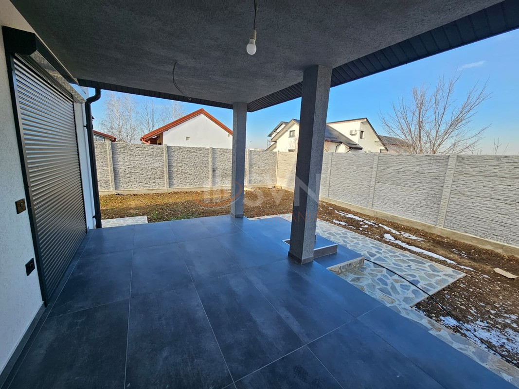 Parter: hol, baie, bucatarie, living luminos, dormitor matrimonial, terasa acoperita, spatiu tehnic (masina de spalat, uscator, depozitare)