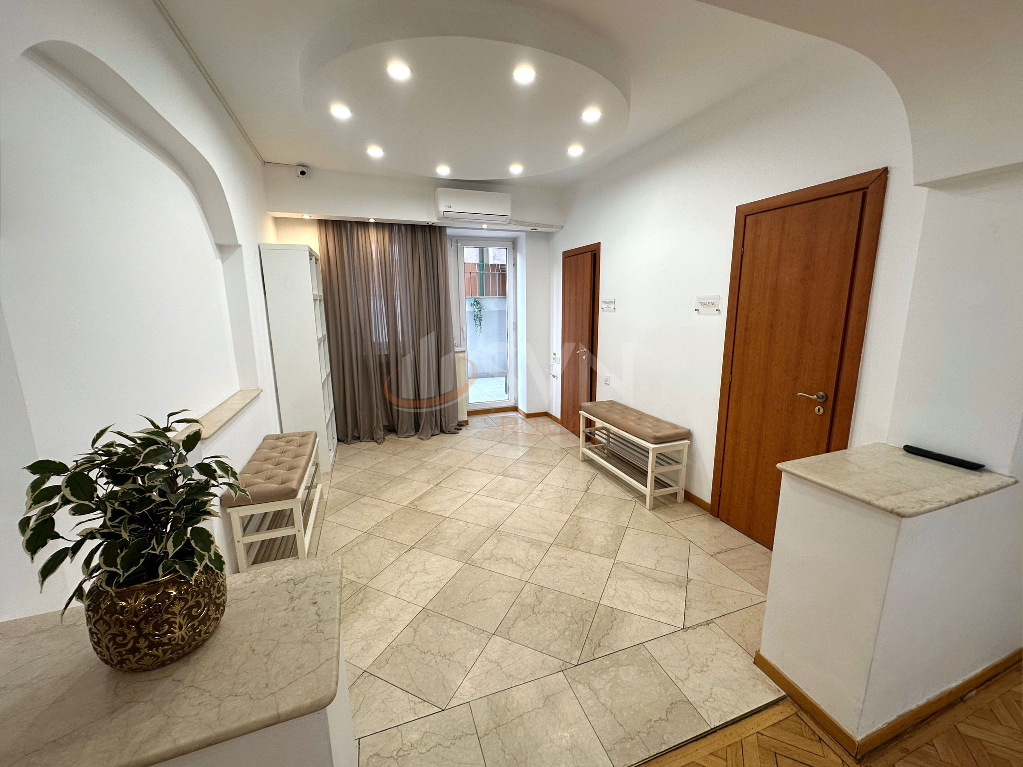 Spatiul, dispus pe doua nivele, parter si demisol, este bine compartimentat si ofera un cadru elegant si functional, potrivit pentru diverse tipuri de activitati de beauty, wellness, showroom, fashion, pilates, yoga.