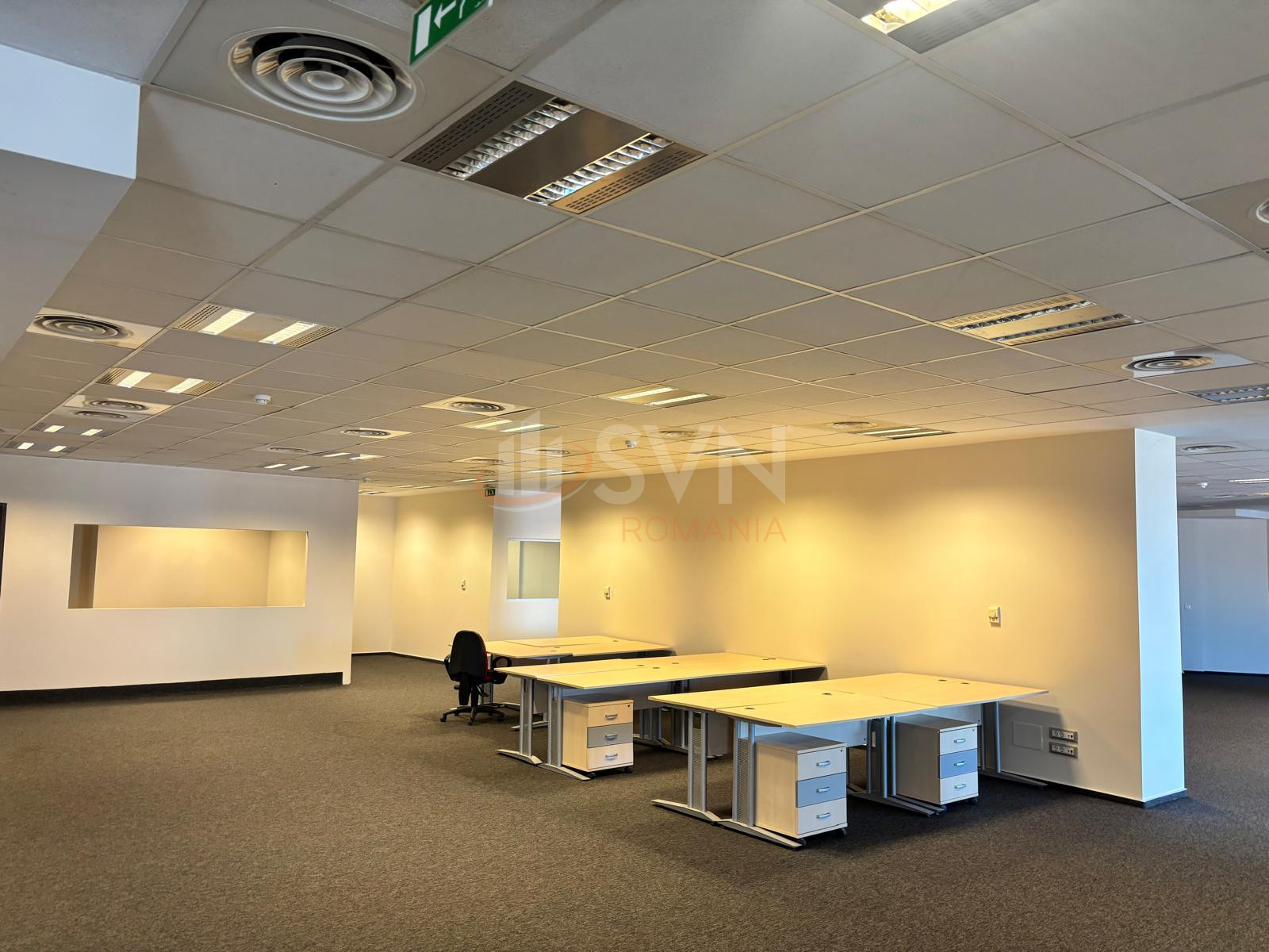 SVN Residentialist Pipera propune spre inchiriere un spatiu comercial cu suprafata totala de 1,041.60 mp, format din 2 spatii individuale ce pot fi inchiriate impreuna sau separat: 552.77 mp si 488.82 mp. Spatiul beneficiaza si de o terasa de 4.15 mp, facturata la 7 euro mp, in timp ce suprafata utila este inchiriata la 10 euro mp. Spatiul este situat intr o cladire de birouri moderna, in imediata proximitate a Politehnicii Bucuresti, la doar 5 minute de mers de Centrul Comercial Orhideea, 3 km de Piata Victoriei si 4 km de Piata Unirii.
