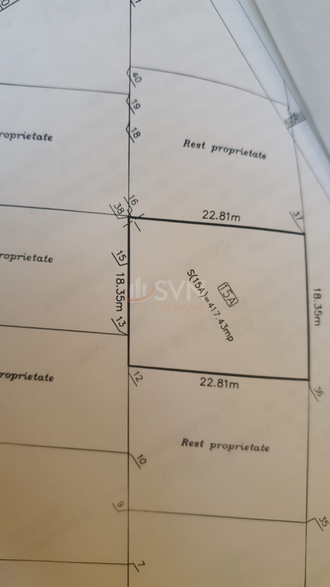 Terenul beneficiaza de o deschidere generoasa de 36.7 m la strada si o adancime de 22.81 m, ceea ce permite o configurare eficienta a constructiilor si a curtilor individuale. In proprietate este inclusa si o cota de drum de 163.24 mp.