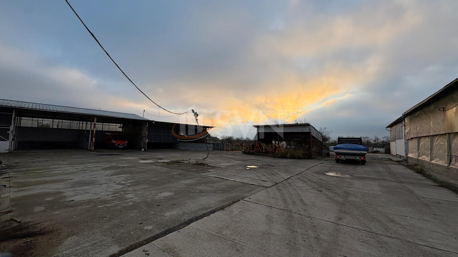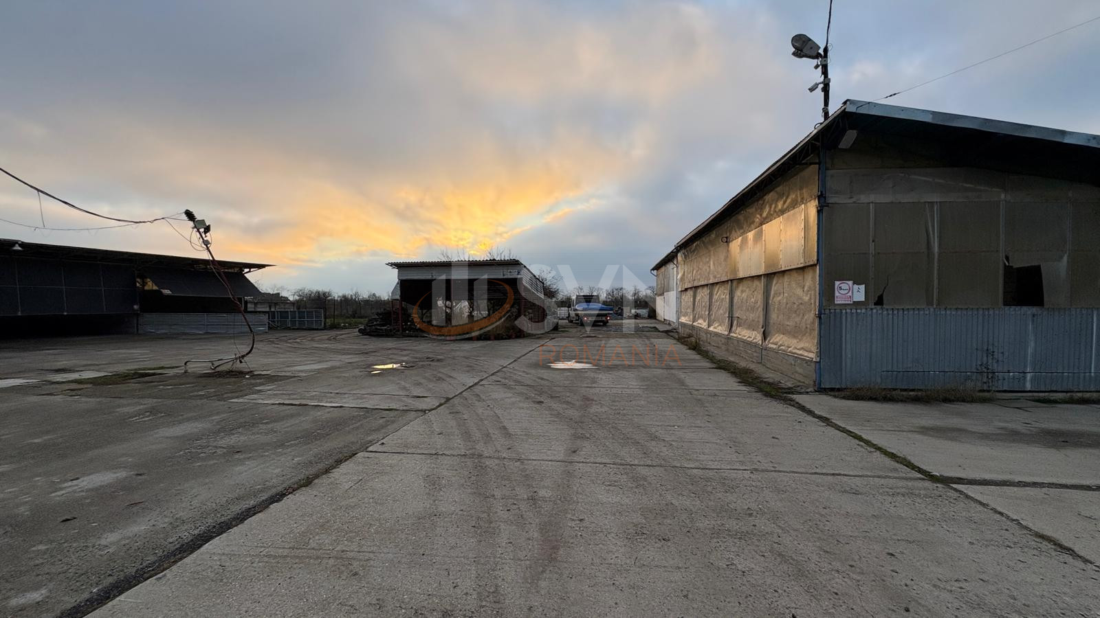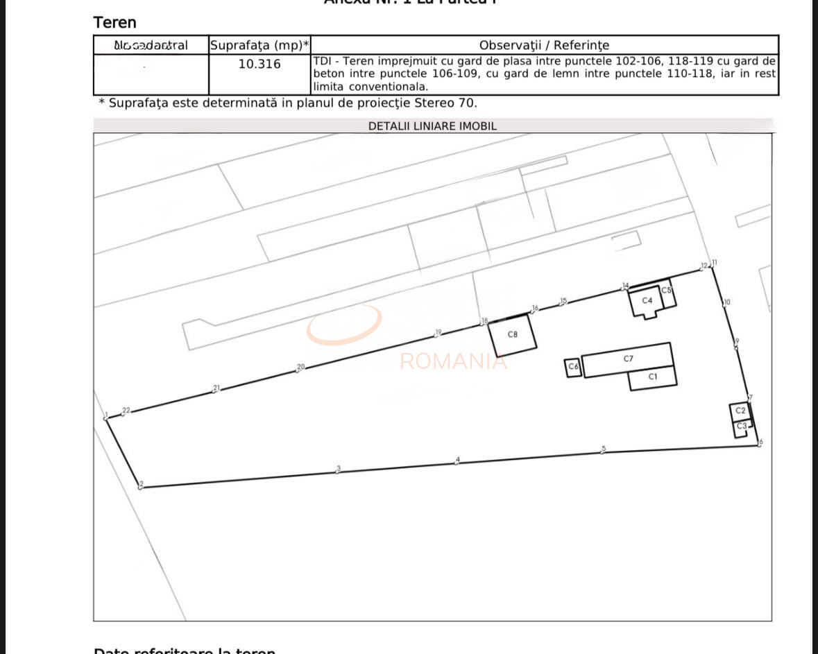 Terenul este impartit astfel: partea din fata este betonata (curti constructii – 5.220 mp), iar partea din spate este teren arabil (5.096 mp).