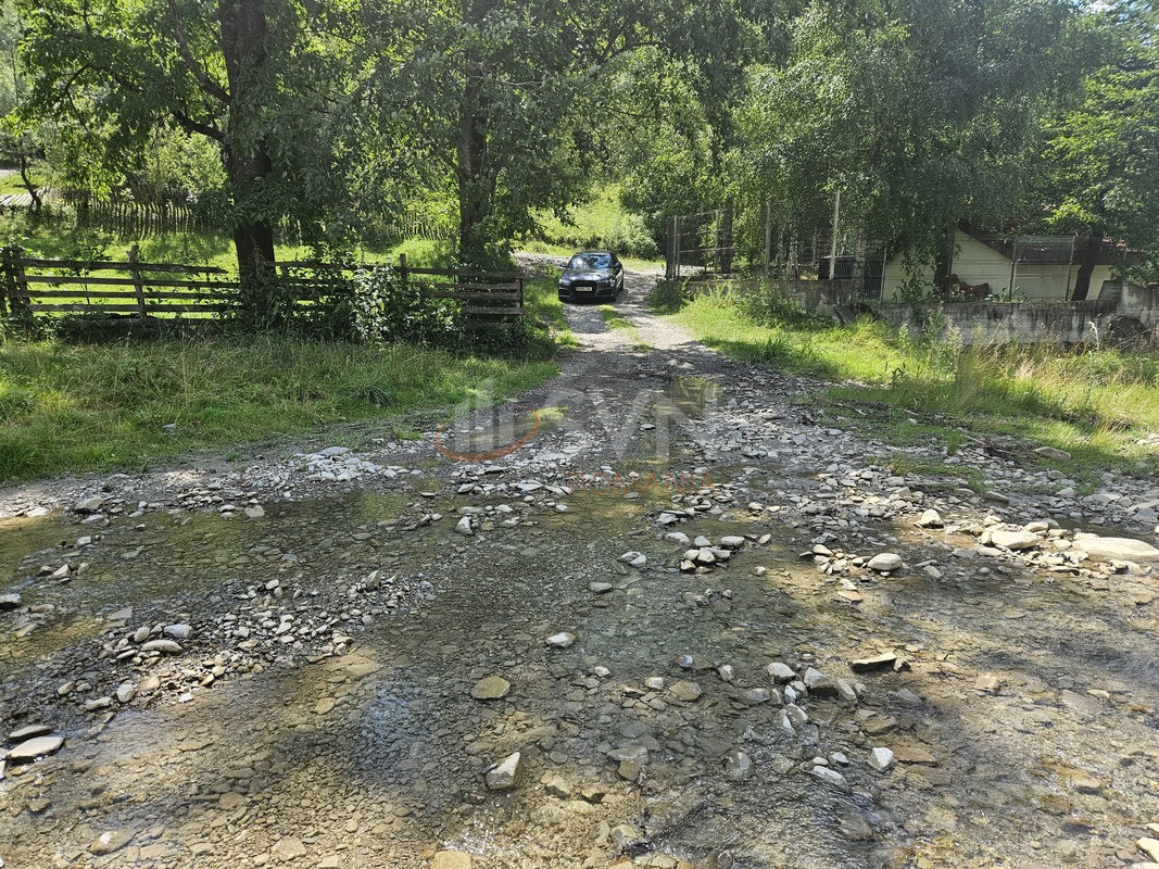 Accesul la teren se face traversand un paraias, vizibil si in fotografii, un detaliu care ofera autenticitate si un plus de intimitate acestei proprietati cu mult potential.
